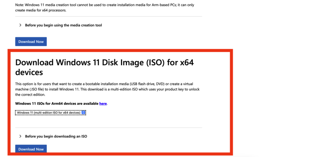 - Download the Windows 11 iso from Microsoft’s official website. (Refer below screenshot to download the iso file).