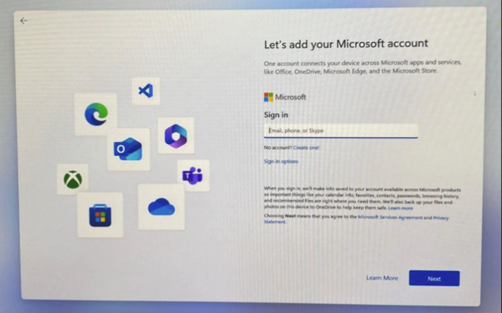 - If you are connecting to the internet, you will be navigated to login to Microsoft account.